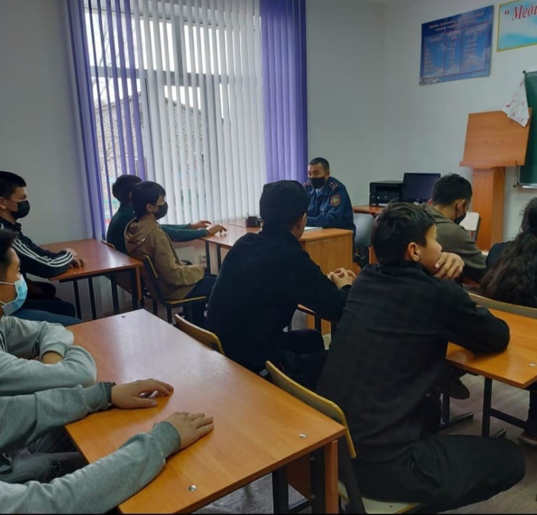 Құқықбұзушылық пен зорлық-зомбылықтың алдын алу мақсатында Абай аудандық ішкі істер бөлімінің жасөспірімдер жөніндегі инспекторы Ғаниев Ұлан Мұхитұлы колледж студенттерімен кездесу өткізді.