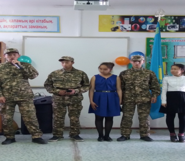 АӘД пәні мұғалімі М.Мұқатаевтың ұйымдастыруымен «Сапта жүріп ән айту шеруі», «Айбын» әскери -спорттық ойындары болып өтті. Бұл шеруге 1-2 курс студенттері қатысып, сапта жүру, ән айту, оңға, солға бұрылу тәртіптері көрсетілді. Сайыс соңында «Үздік командир», «Үздік сапта жүруші», «Үздік ән айту» номинациясымен оқушылар марапатталды.