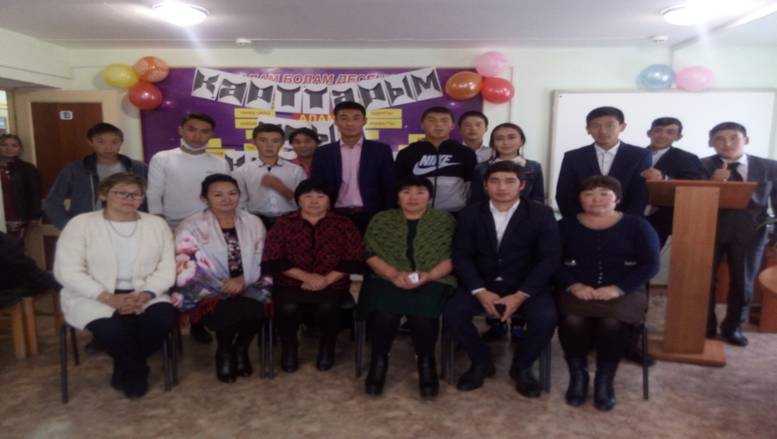 Жаңа оқу жылы «Болашаққа бағдар-рухани жаңғыру » атты ашық топ сағатымен басталды.Құрылыс тобының студенттері қазан айының басында қарттар күніне арналған мерекелік кешке қатысып,өз өнерлерін көрсетсе,ұстаздар күніне арналған мерекелік кеште де белсенділік танытты. Колледж ішінде өткен «Алтын күз » мерекелік іс-шараға да өз тобым қатысып, 2 –ші орынға ие болды.Ал қазан айында құрылыс тобынының студенттерімен адамгершілік туралы тәрбие сағатын өткіздім.Онда әр оқушының өмірге,қоғамға деген көзқарасын анықтау мақсатында сұрақтар қойылып,зерделеу жүргіздім. Нәтижесінде әрбір студентке жекелеме тәрбие сағаты жоспарланды. Жоспар бойынша студенттердің әрқайсысымен тек ұстазы ғана емес,екінші анасы, досы ретінде ашық әңгімелесіп,мазалаған сұрақтарына жауаптар берілді.