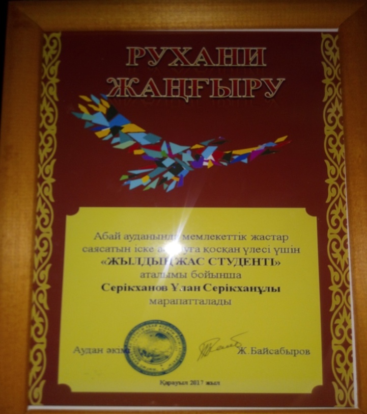 Серікқанов Ұлан аудандық «Жыл студенті» атағын жеңіп алды.