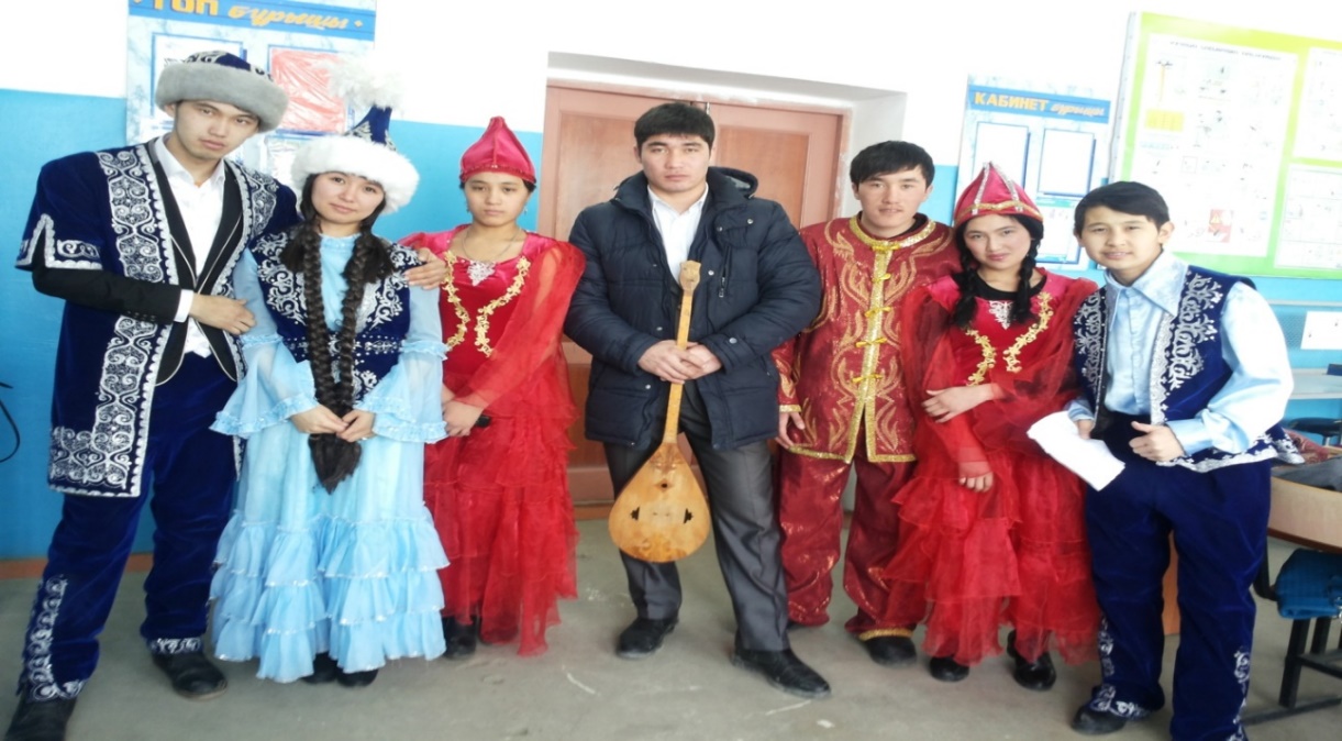 ауылдық округінен қонақтарды шақырып, ҰОС – ның 75 жылдығына орай қазақтың салт дәстүрлерін дәріптеп, көріністер көрсетіп, құдайы тамақ беріліп, ата-аналарымызды марапаттадық.